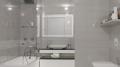 Коллекция «Джей» выполнена в двух классических оттенках камня. Плитки с геометрическим паттерном миксуют обе текстуры, что позволяет сочетать на стене как тёплые, так и холодные тона.